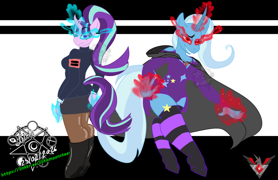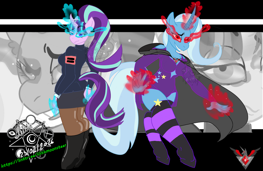 Good morning, sweethearts! I wanted to share this recent drawing of my villain AU from My Little Pony that I imagined with Starlight Glimmer and Trixie hehe. It’s honestly just an excuse to have them together. I hope you like it! And just a reminder that my commissions are open—waa, little kisses! 💖