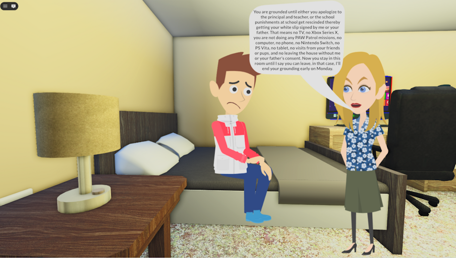 Ryder ended up sitting on his bed while his mother told him the following: "You are grounded until either you apologize to the principal and teacher, or the school punishments at school get rescinded thereby getting your white slip signed by me or your father. That means no TV, no Xbox Series X, you are not doing any PAW Patrol missions, no computer, no phone, no Nintendo Switch, no PS Vita, no tablet, no visits from your friends or pups, and no leaving the house without me or your father's consent. Now you stay in this room until I say you can leave, in that case, I'II end your grounding early on Monday." So there Ryder sat in his room, doing nothing for the next 3 to 5 "business days". Turns out, his grounding/punishment will be rescinded tomorrow.