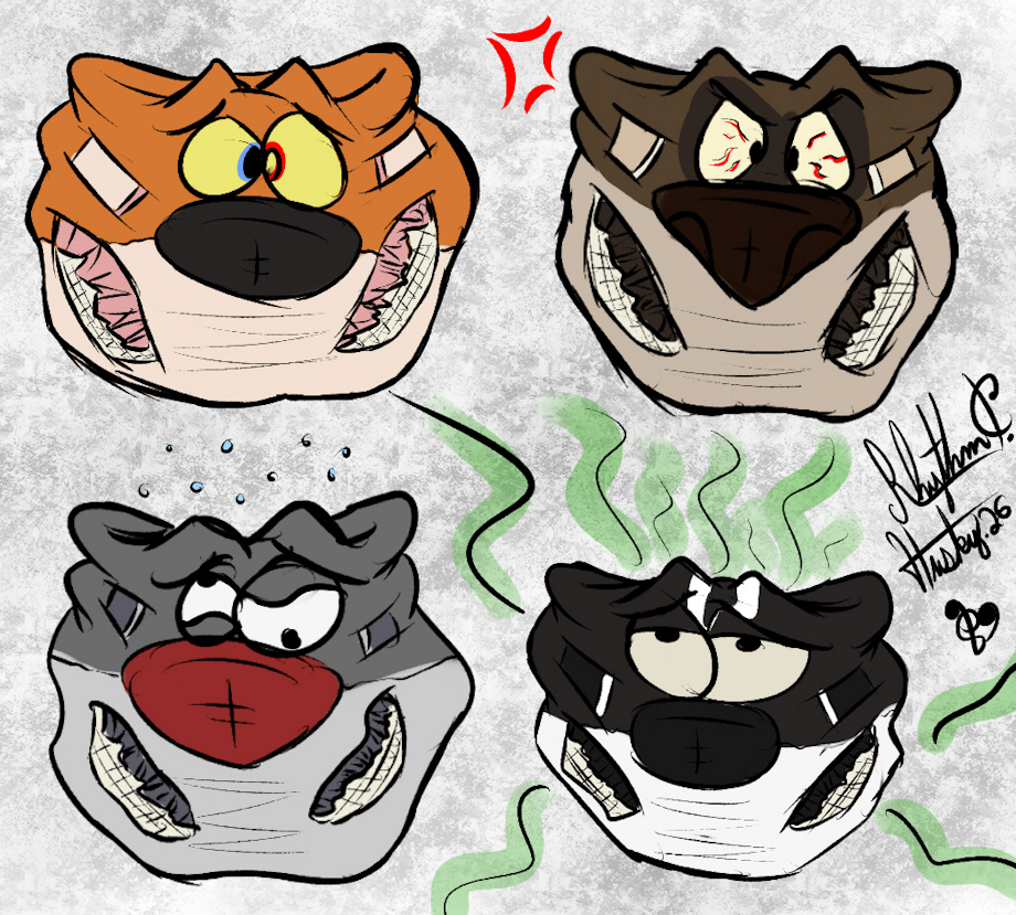 Some toony characters that got turn into diapers with the Diaper ray gun and being sold at the county fair a Fox (Jagafox), A Bear, a Wolf, and a Skunk only cost 15 ticket for a pack of one of them.