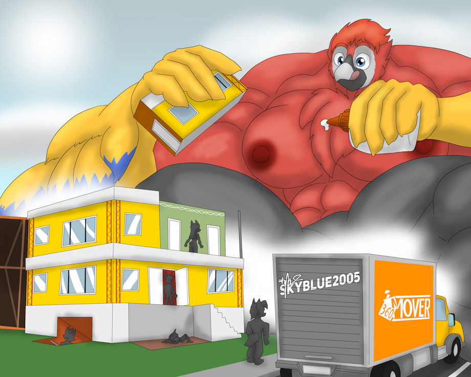 The 13th take on Everyday Bodybuilders, featuring Johnny Norman (in his parrot form), now a giant overlooking the humble suburbs, decides to help build few houses with a couple lot of premade modules, though how he sticks such modules to complete houses seems much questionable to those watching him from the ground. This entry is also made to commemorate the Macro March this year.