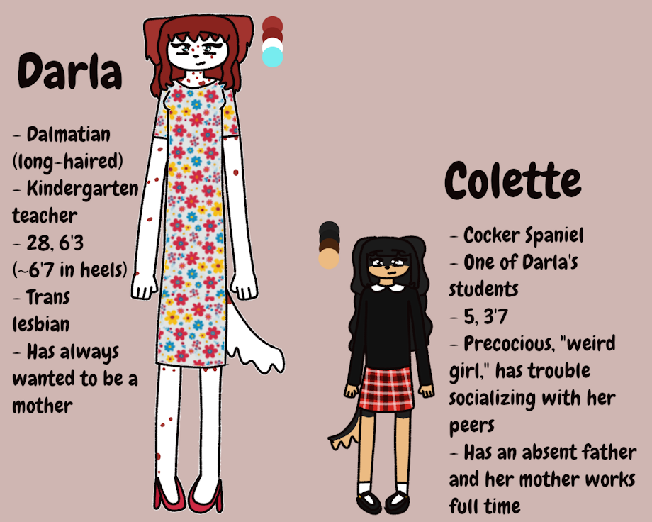 girls from a story i'm writing. colette's mom ends up dying in a car accident and darla adopts her