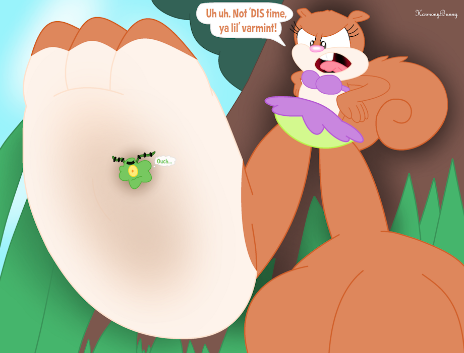 Normally I'm not into F>M myself, but since Plankton is canonically tiny for his size, I have no choice but to make him the subject of a giantess Sandy piece. Seems it was a mistake to infiltrate her Treedome again, especially since last time went SO well.