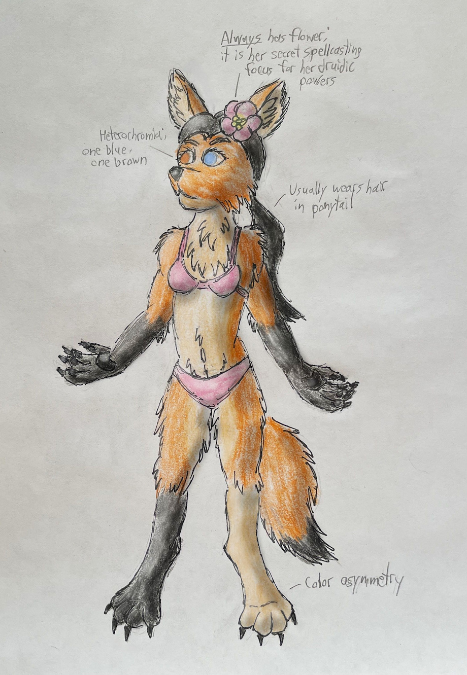 This is part of an ongoing project to turn some of my old "characters" into proper characters by expanding their personalities and giving them a few more visually distinct traits to make them more recognizable. This fox girl, Saria, is a druid who is skilled with plant manipulation and is a proponent of vine snares. :3 She is the subject of a terrible prophecy that states that doom and bloodshed will plague her homeland if she does not die before her 30th birthday. Most people interpret this to mean that she will become some horrible tyrant or evil sorceress. Her mother interpreted this to mean that she would prevent some great evil with a noble self sacrifice, so her mother raised her in the safety of the forest, where she learned ancient druidic magic. Most people want to kill her as a result of the prophecy. Saria tries to not think about the prophecy too much--it's hard to live with that hanging over her head. She's slow to trust (rightfully so, since most people want her dead), and she's quicker to make friends with forest animals or even plants (which she speaks to with her magic). Also my heck please forgive my handwriting I don't know why I didn't just type the notes instead of writing them by hand.