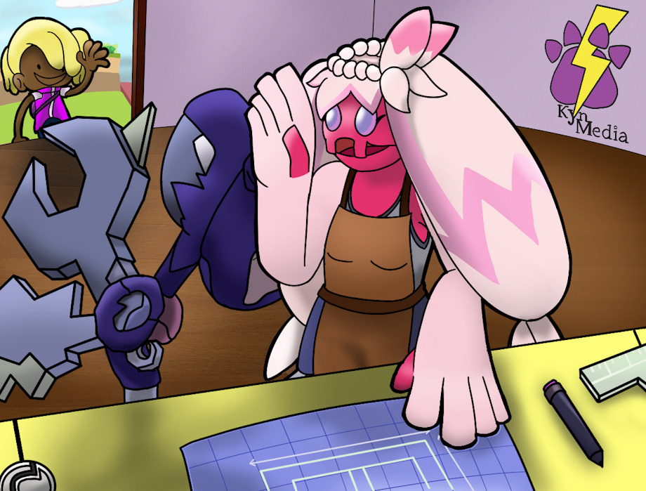 While I don't have Pokopia yet, I have been enamored by the many new Pokemon variants in the game, like Tinkmaster here, whom I imagined here making new blueprints for Ditto to craft. I just really liked her design and her hammer, and wanted to draw her and Ditto interacting. Something short and cute while I'm in the middle of other fun art pieces I'm working on.