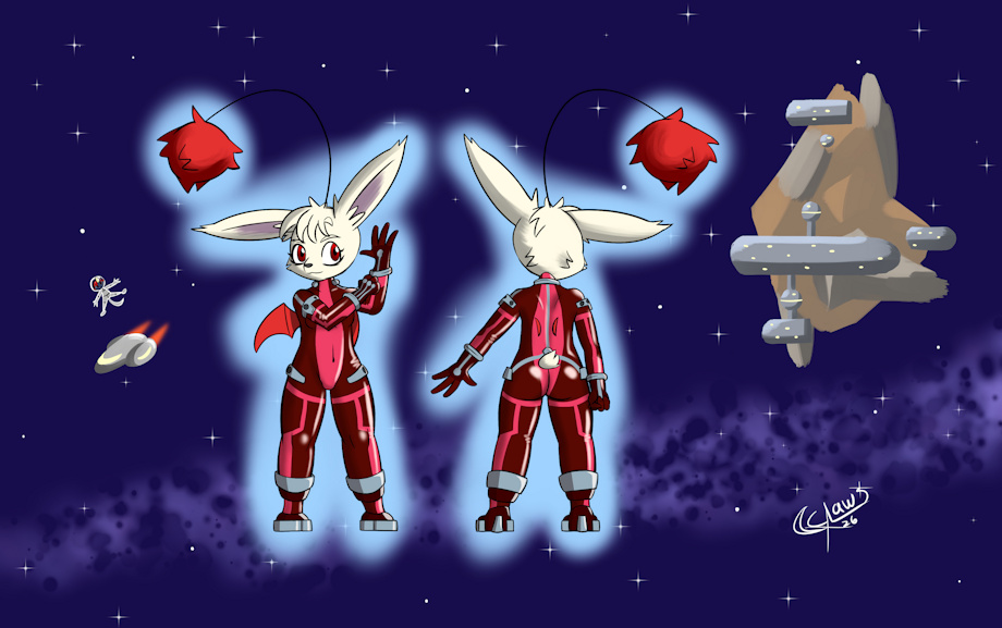I had a thought, what if Neuge were in a sci-fi space setting? So I decided to draw her in one of those tight fitting futuristic space suits. Space isn't really my thing, so it was a bit tricky.