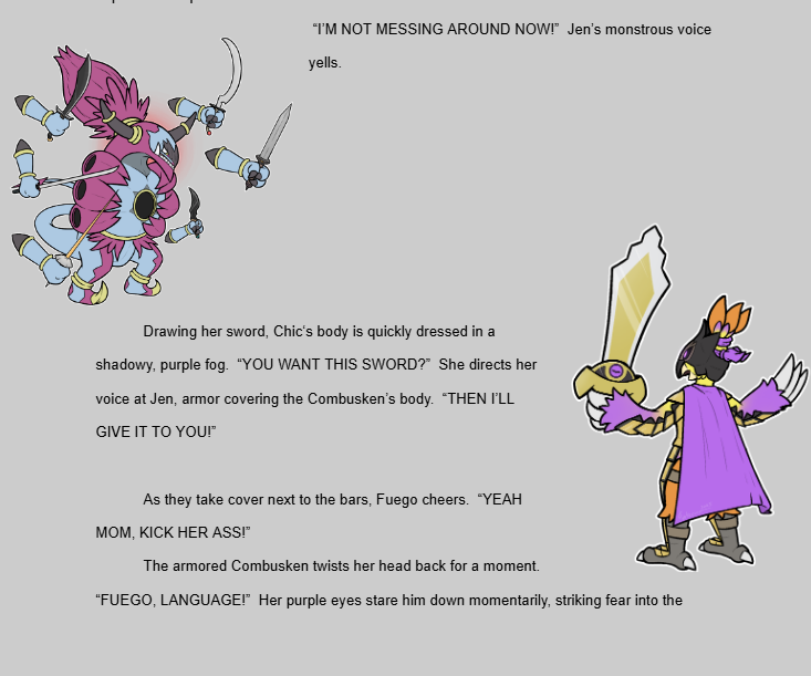 After a little unexpected help, Chic was freed and ready to take on the threat that had caused all of their recent misfortunes. Over a decade of training made her nothing but prepared for the giant disadvantage