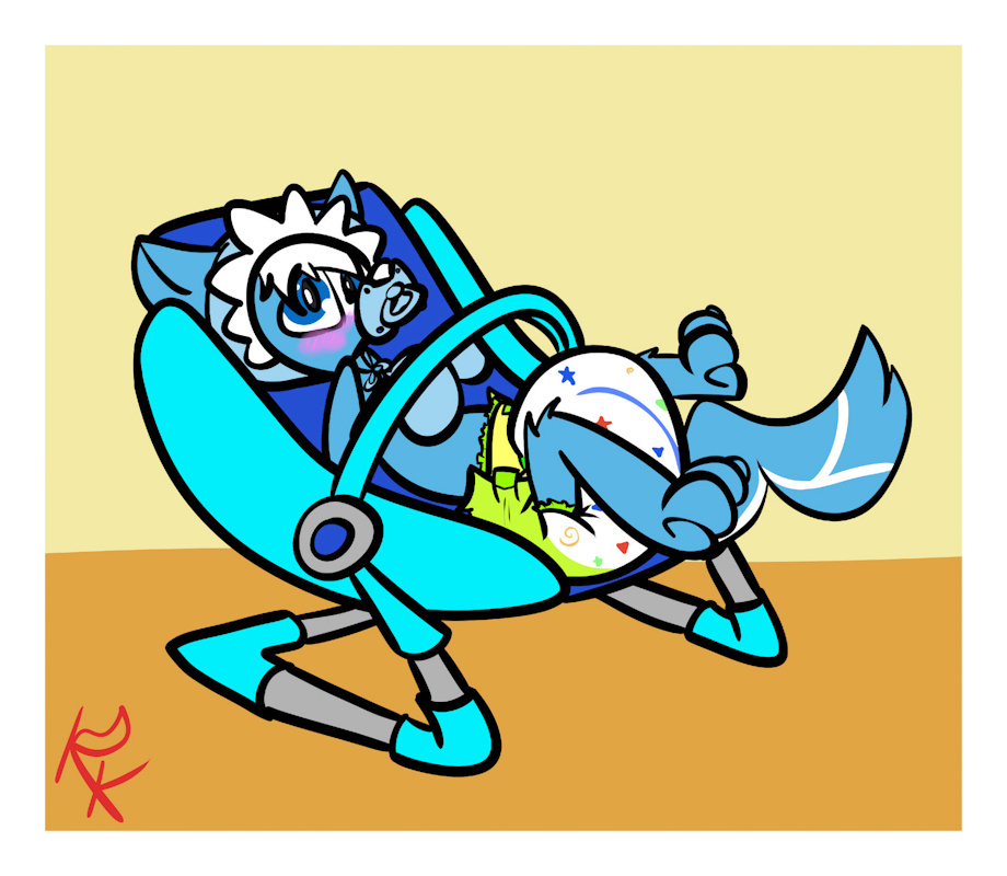 It seems someone managed to get Gussy where he belongs, in a thick diaper and in a baby bouncer with mittens on. It seems he's quite sure he shouldn't leave there, just as the good baby he seems.