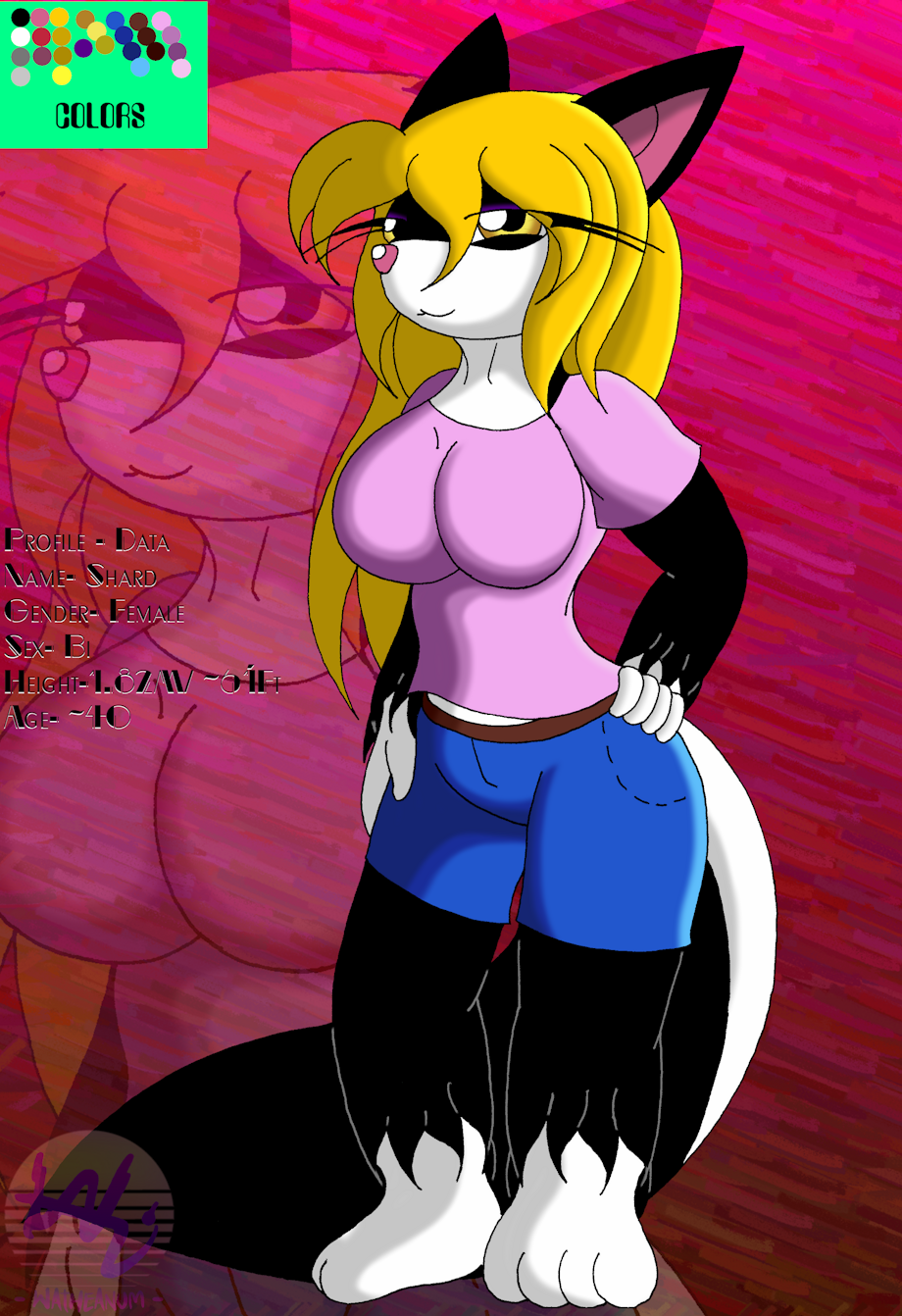 Shards creation was more a thing i did for a friend. I did create her because i wanted to do something for a friend and made a cute female and big skunk lady. Back in the day, she had no name so my friend gave her the name "Shard" which i thought was still cute and somewhat fitting.