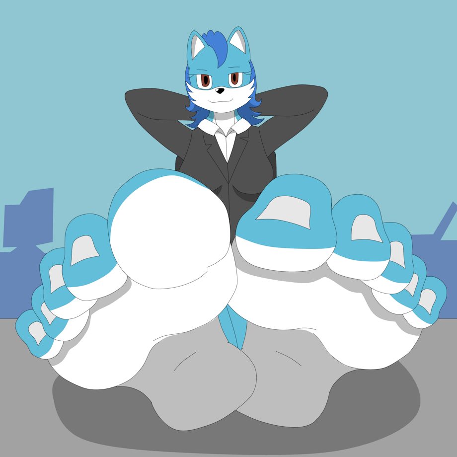 Here, we have my Mobian OC gal Iris the Fox as an office worker with her bare feet propped up on her desk as she points her toes at the viewer.