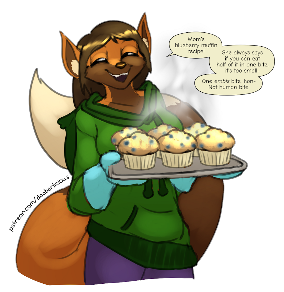 Mia bakes muffins for the viewer, Suggested by Floofy!