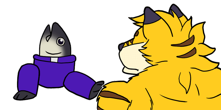 Skaifox has the habit, whenever we're playing the newest Fibbage, to get tilted by the 3 fishes in trousers dancing. I made an animation out of it.