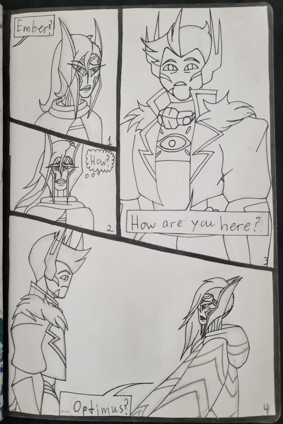 Wip comic page of Hazformers Ember and Optimus meeting in Hell. This will be digitalized later.