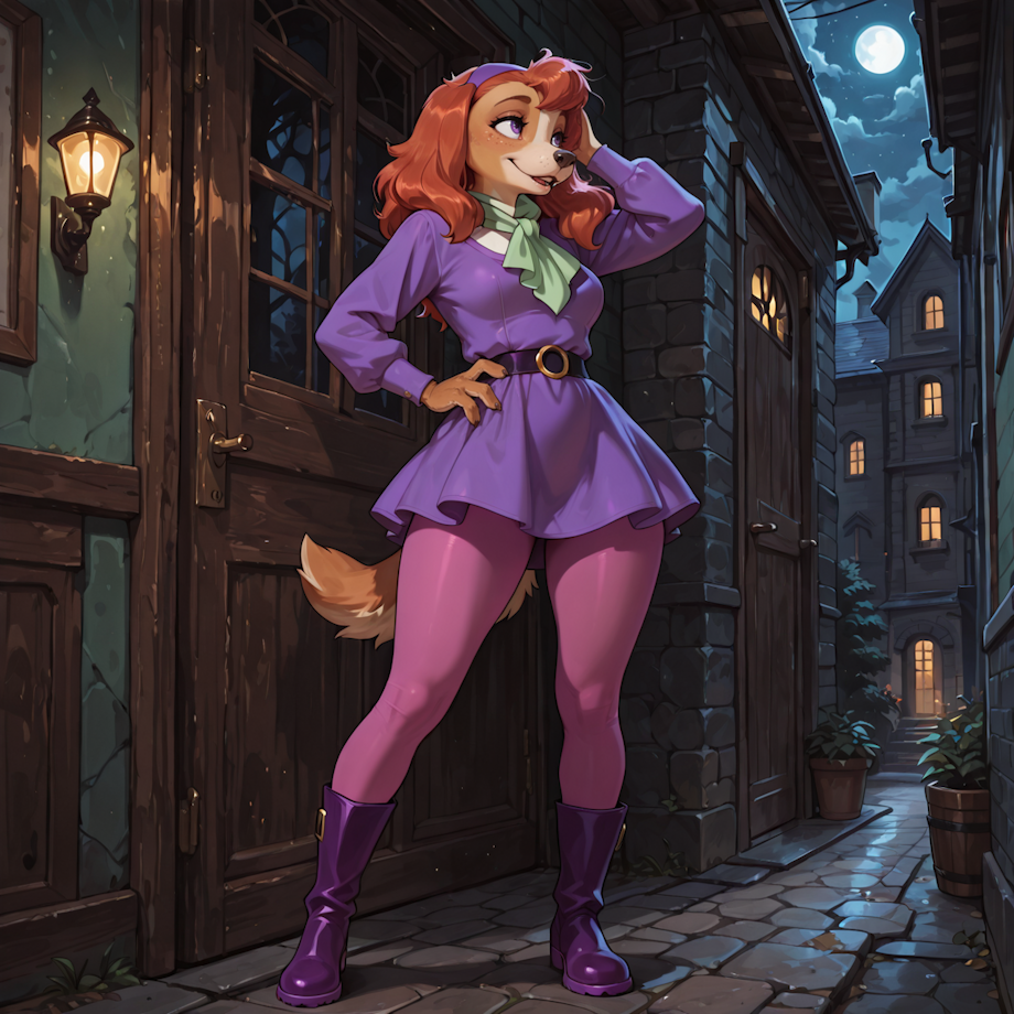 Daphne keeping up on her looks, no matter of the mystery monster is real or not..