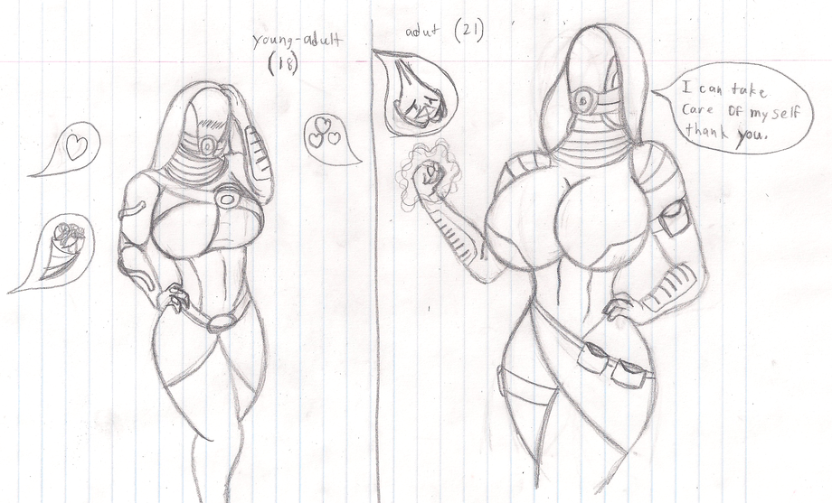 Just some age progression practice with my quarian Nila'ruta. I think she looks cute in the younger pic. =w=