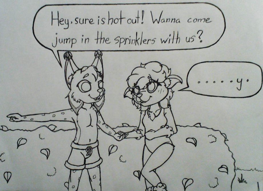 Lil' work sketch of MisterFluffums sheep character Dorothy and Aiden. In his Cubsitting game, Dorothy always replies with a ".....y." instead of a "'kay" or "okay".