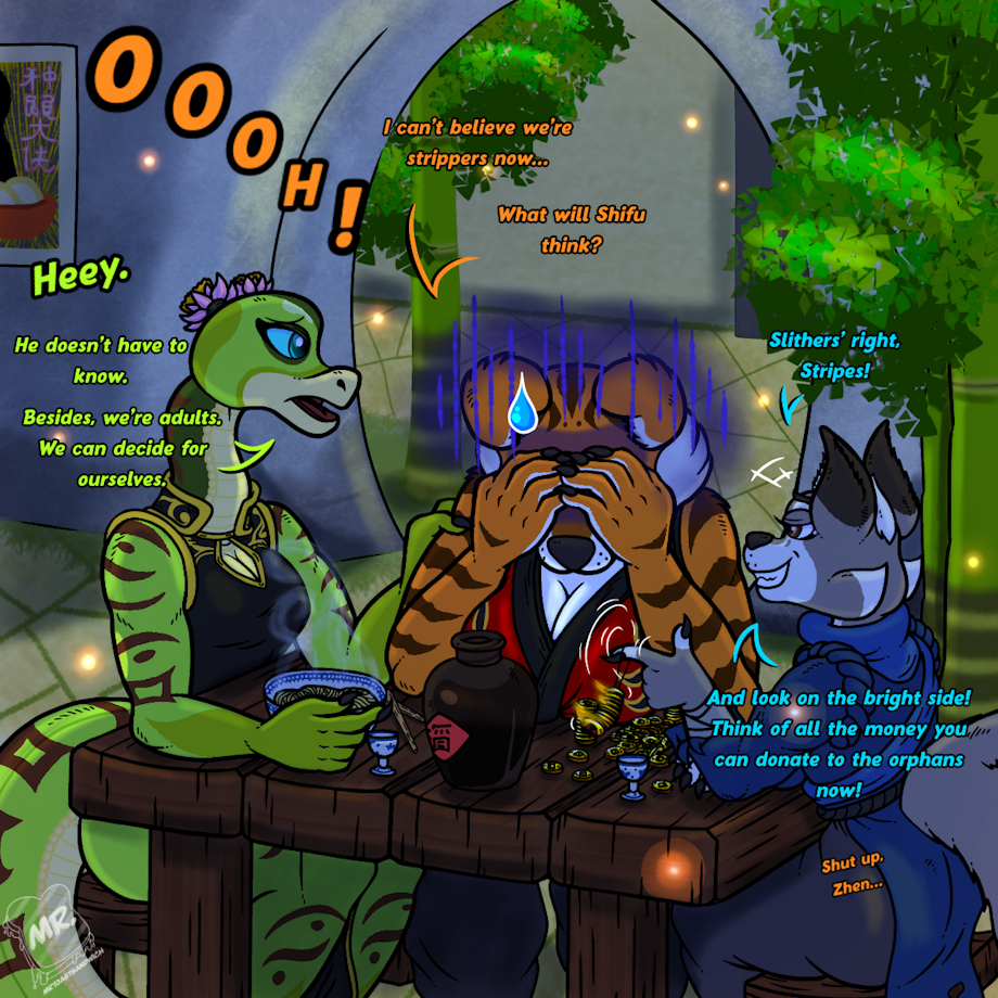 The ladies of the Siren Lotus are drowning their sorrows at Mr. Ping’s restaurant after their first real shift in the valley’s new… establishment. Some of them are taking the whole ordeal better than others however. At least the money’s good. 🪷🍜
