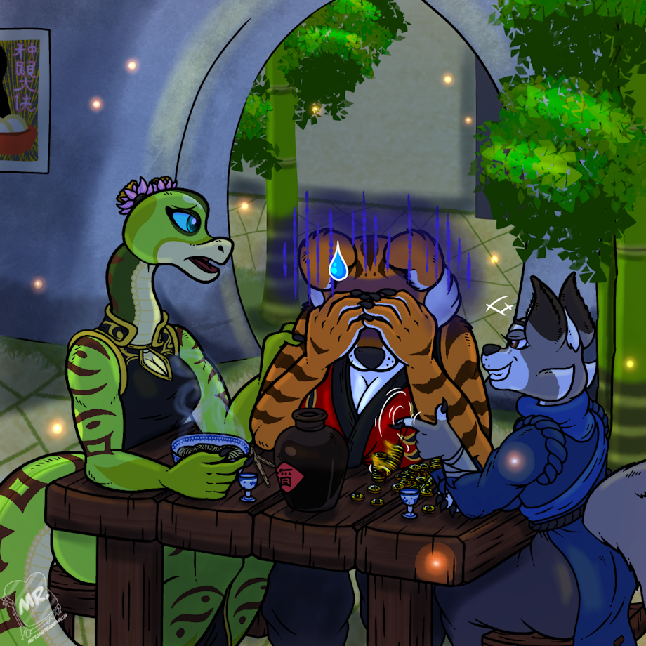 The ladies of the Siren Lotus are drowning their sorrows at Mr. Ping’s restaurant after their first real shift in the valley’s new… establishment. Some of them are taking the whole ordeal better than others however. At least the money’s good. 🪷🍜