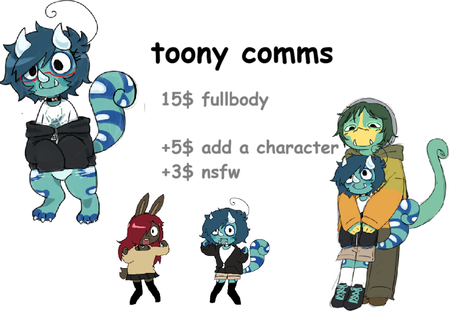 i want to preactice this new artstylee!! so im takingg sum commss! i will be takinn maybe 4 slots or 3!