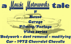 Having taken care of that in a rather cheerful manner, continually swaying her thin hairless tail in wide arcs behind her and humming along with songs on the radio loud enough to hear herself over the racket of the rain, Missy braved the rain halfway through the morning to bring her cameras and lights and tripods over to the frontmost of the two large buildings to continue work on the Chevelle and shoot even more footage. There was still plenty of work to do on the body; a good number of little dents and dings that should be smoothed out, the deck lid and doors had to be re-hung, and she would even have to improvise some kind of stand so she could also put the front fenders and hood back on the car while the body was still sitting on a dolly, so she could more easily measure, cut and weld to do the modifications needed to fit a 1969 grille, headlights and hood between 1972 front fenders, before she could even move the car to the secondary room to do the body filler and sanding stage.