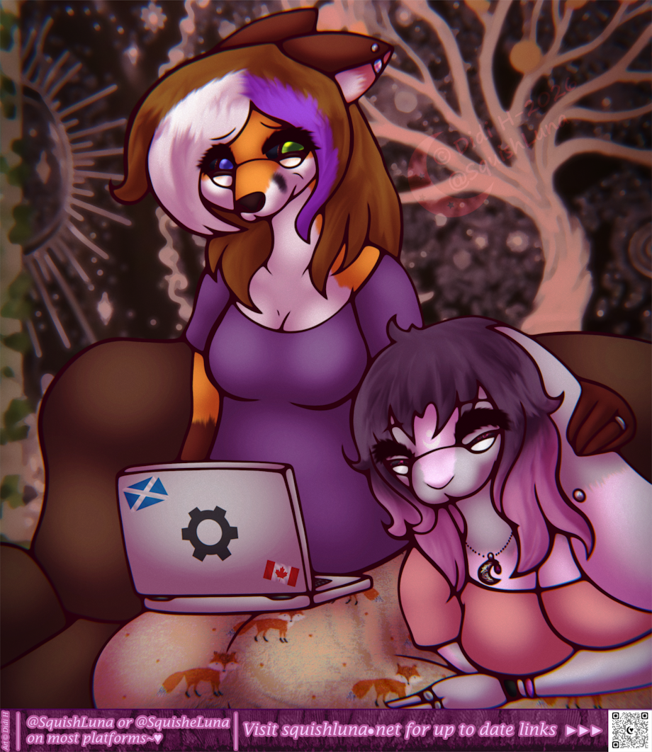 This is so sweet, and such a charming scene. Love the ear pets and the comfy vibe of the piece. There's nothing better than snuggling up to your beloved for a quiet night in and you've done such a beautiful job with this. Love the fox print skirt and the pretty background behind them. Gorgeous work all around!