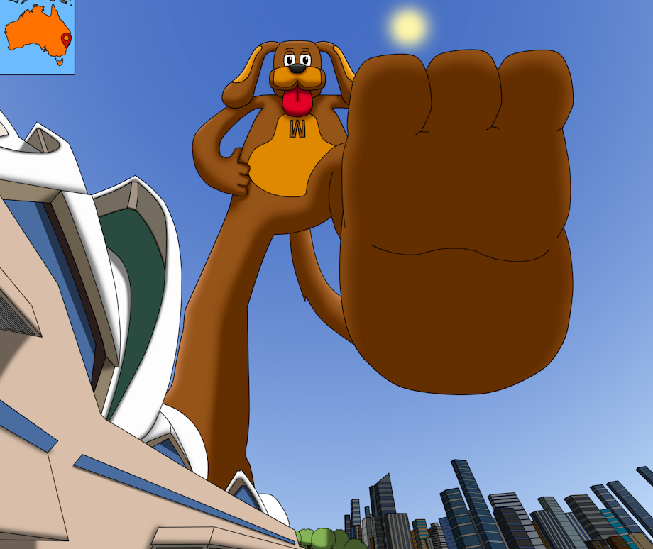 Wags the Dog grows colossal, ready to fun and destroy the city of Sydney, New South Wales, Australia. XD