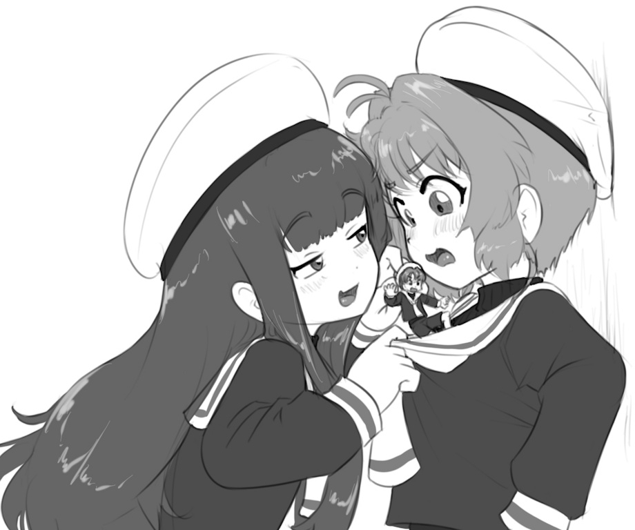 That is a fantastic Tomoyoface, hahahaha. Good teases, nice job on the character/facial angles. Sakura's embarrassed face too, awww. I like the details with the tugged on uniform and undershirt, plus the hat squished up against the wall. An adorable opener!