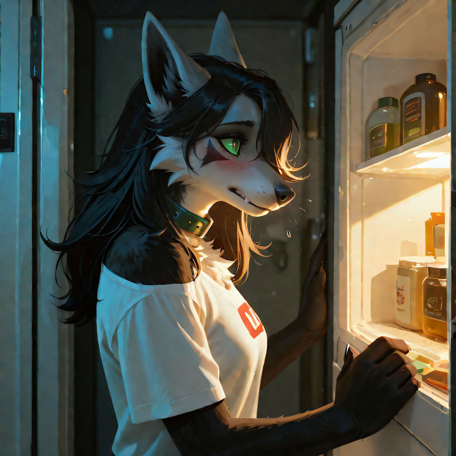“Right,” she mumbled, her ears flattening as she quickly shut the cold box door again. “Guess… I’m not that hungry after all.”