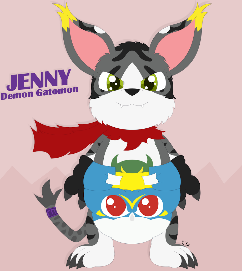 This is the opposite of Jenny the Angel Gatomon. She looks more mischievous!