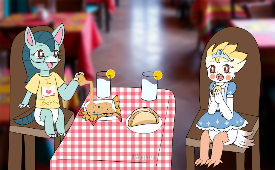 Nancy & Coralina having lunch at a Mexican Restaurant.