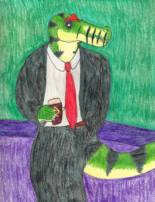 In a quicker turn-around than my previous arts, it's a half-assed St. Patrick's Day depiction of my dinosona Saur as a Baryonyx enjoying a mug of Guinness beer.