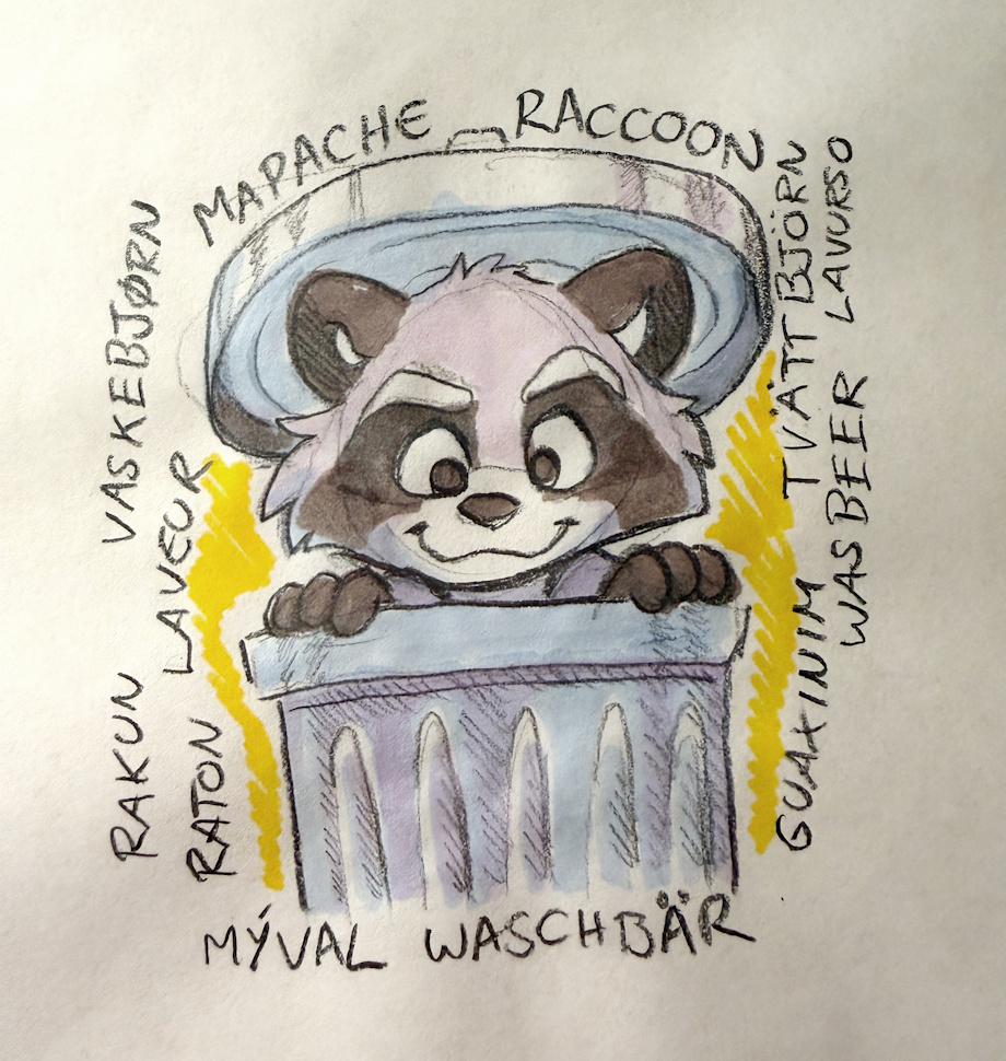 Mapache. Raccoon. Mýval. Waschbär. Guaxinim. Rakun. Baskebjørn. Raton Laveur. Wasbeer. Tvättbjörn. Lavurso.