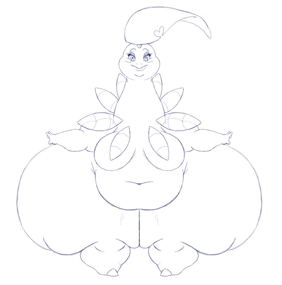 still had grass/fruit shortstack brats on the brain,so took an old chikorita doodle where she was rocking the designer choker and had a gigantic dumper,perhaps this is her after evolving and becoming an even more pear-tacular latina.