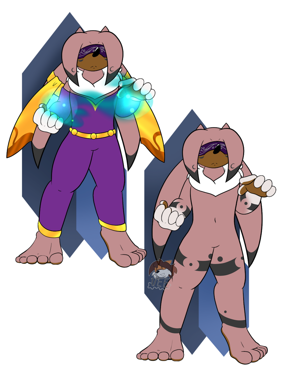 Hunted in his youth by humans who wanted to sell him as food, he wears parts of their attacks on his body to send a powerful message--that not only will he not give in, but to spread the word that it's not all peace and love between the two main talking races of the world. When not on the clock with directing ships and cargo, Yarrow loves to spend his time with Iruka, cuddling his warm, fluffy body and toying with his huge ears.