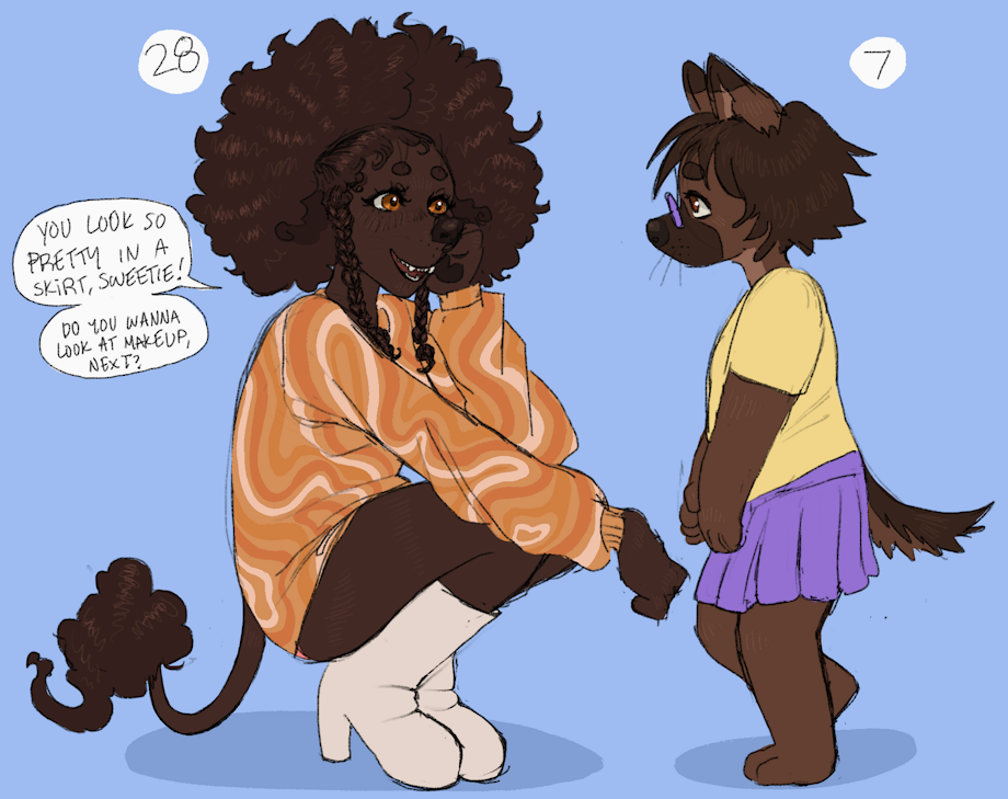 katie and phoebe age/role swap au, as requested by a few people! In this universe phoebe is katie’s babysitter while she attends college and katie decides to pursue that pretty older woman as soon as she becomes an adult. I really thought about making old phoebe interested in young katie, too, but it just wasn’t very in-character for her. however, failing to set boundaries with a much younger girl(that she even knew as a child…) is very much in character for her, so they take longer but they definitely still have a forbidden romance. Plus, I think an older phoebe would find herself comp-hetting into a marriage with a man and maybe even kids- so the cheating and homewrecking aspect is another fun feature of this au ;D