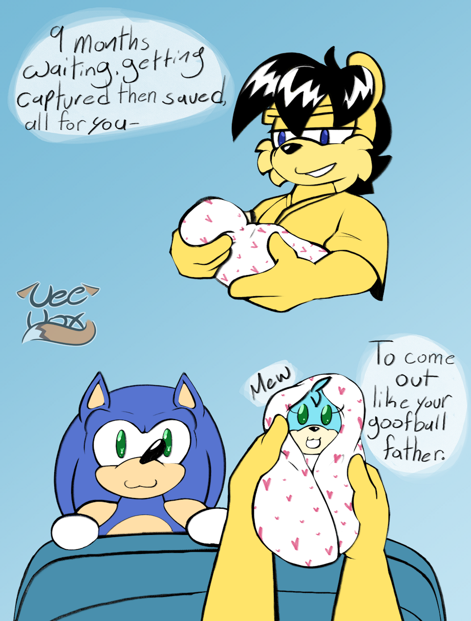 Harmony smiles just like her dad Sonic, and has his humor/ thrill-seeking tendencies all wrapped in one hedgegoose.