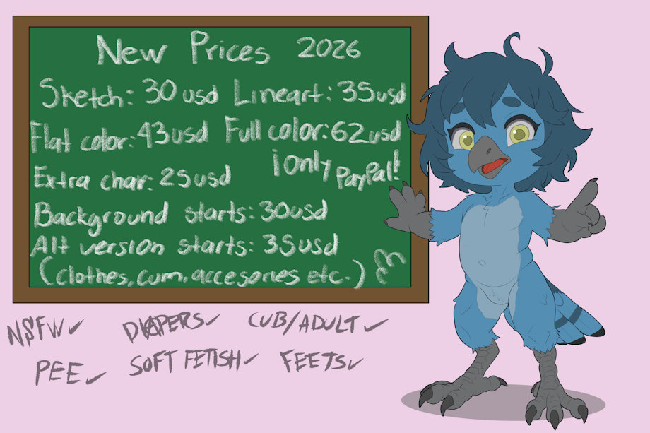 I'm announcing that I'm opening commissions today! Limited spaces available! You can message me here (I think there's a chat option?). You can also write to me at inkbunny smol boye, Account X @smol__boye, or Discord smolboye_48909