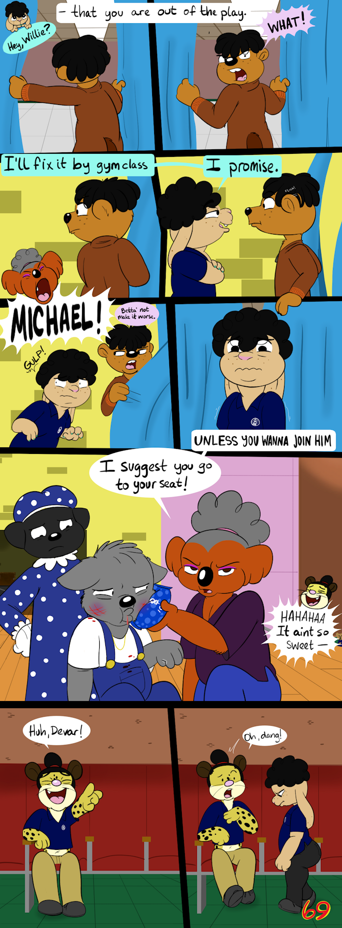 Ms Tay kicks Willie out of the play. Mike sneakily calls Willie and gives him his word that he will be out of detention by gym class. As Willie precedes backstage, Ms Tay scolds Mike with detention unless he returns to his seat. Taco teases Devar for getting beaten up. Mike walks towards his seat down in the dumps.