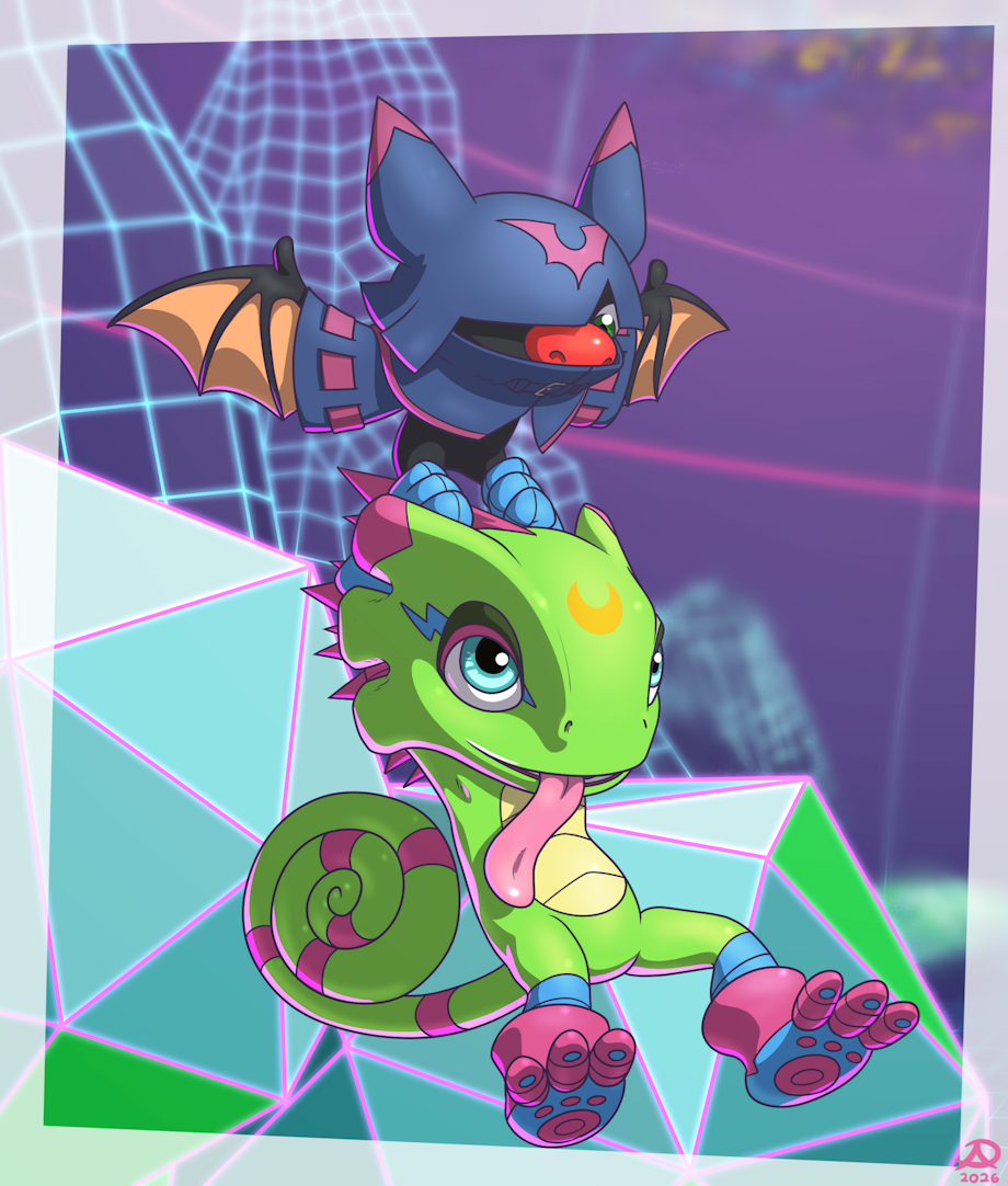 Just a silly little doodle idea I had. Yooka Replaylee had come out around the same time Beatbreak started airing, so it felt appropriate.