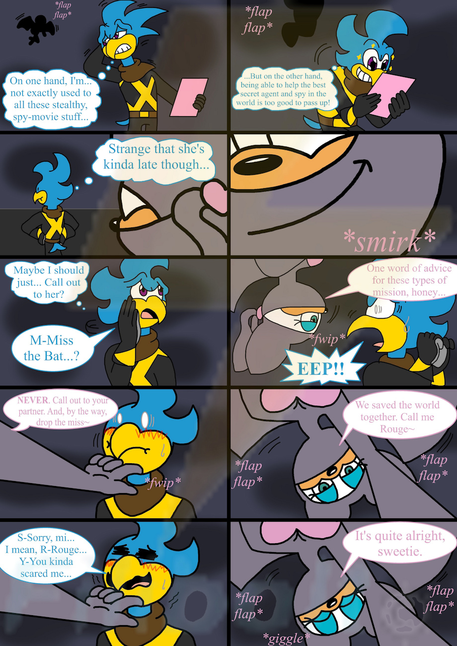 Sky gets called by Rouge to help her with a mission, but before that she gets frisky (nothing new) and decides to try out her new partner's skills, especially when she finds out that he's a virgin.