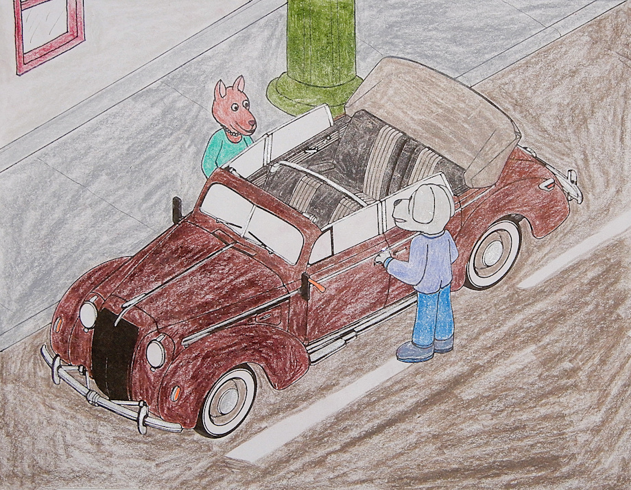 This street scene was based on a lineart from the instruction sheet for a model car I'm currently building. I'll be adding a link to a picture of the car itself as soon as it's finished. I also included an uncolored version of the lineart so you can try your hand at coloring it.