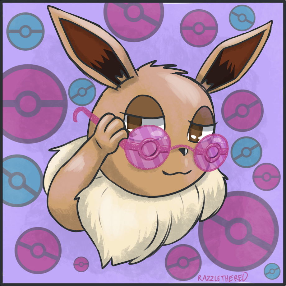 I drew a Eevee today, had the inspiration to draw Eevee with these pink shades when I was half asleep last night lol