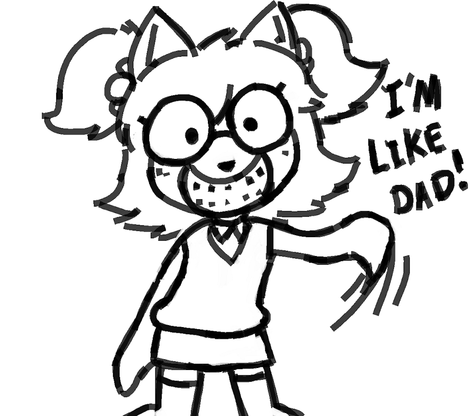 A doodle of kid Claire wearing her dads glasses, and a regular ol' adult Claire.