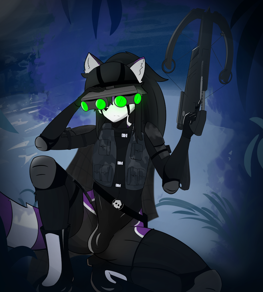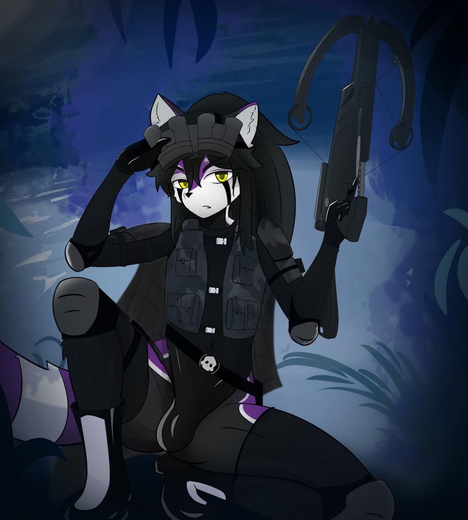 A picture done by LuckyAiza for me a short while back upon the release of the Redacted Regiment warbond in Helldivers 2, complete with a skin-tight suit and his stealth gear.