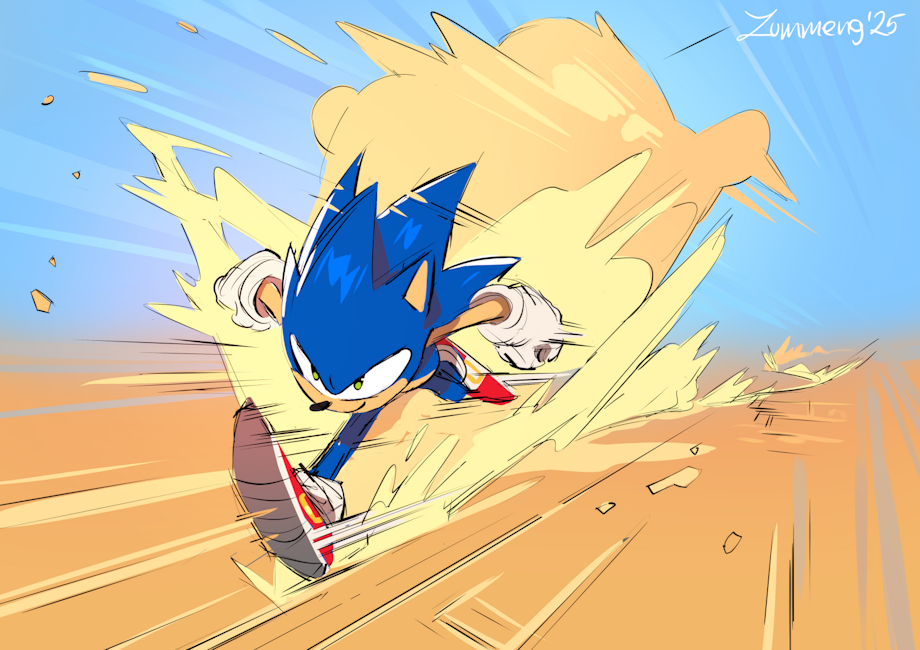 It's been a while since I last made a Sonic fanart, and because one day I had this urge to draw something energetic and fast, I immediately knew that I should pour this sudden inspiration into Sonic :D I want to make more Sonic stuff in the future, because I got really fond of him in the past years :)