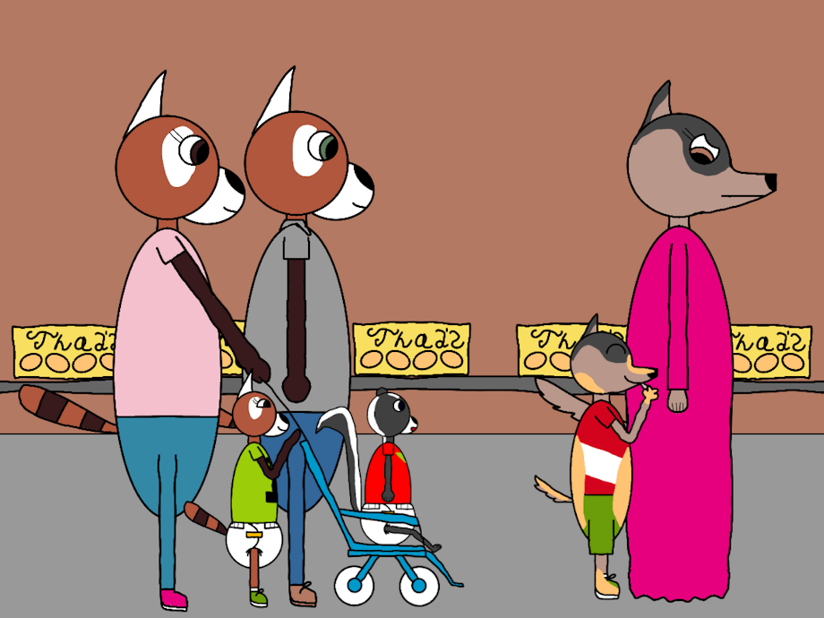 During a family trip to the local caramel factory Ling Ling and her family witnessed a German Shepard boy fall in to one of the mixing vats while trying to eat some of the caramel in it, luckily for the boy the at broke down and the caramel was cooled off enough where he wouldn't be too badly injured, but it was still just warm enough where it would make him all sticky,so when he was pulled out his mother ended their tour early so he could get a bath. This kid started licking himself since he tasted so good now though his mother was not happy about it and told him to stop. Nini and Quing were mildly amused about the whole thing, Fletcher was surprised by how all that caramel stuck to him, while Ling Ling was trying to hold back laughter.