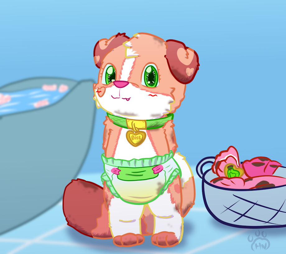 Rosey has had a really fun day playing outside and is getting ready for a bath.