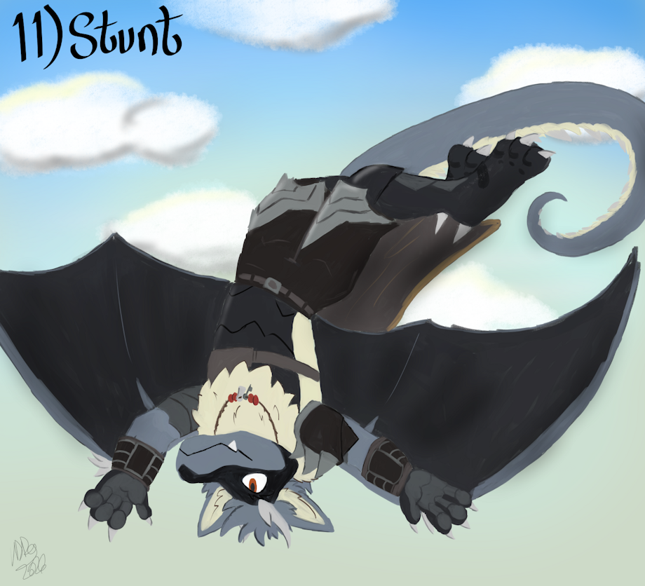 IDDo has been doing the Inktober 52 thing with a prompt every week and did this lovely piece of Squirrel, my dragon lucario, doing an aerial stunt!