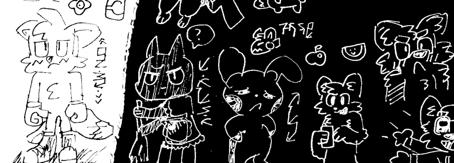 but it is filled with doodles of various drawings that i've seen on the internet. I do them on MS Paint by scanning my scribbles, and then turning them into monochromatic 1-bit images, and then pasting them with transparency (if the background is black, i invert the colors).