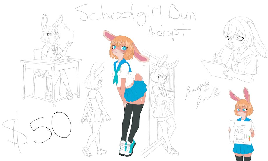 Hello everyone! Here we have the second of a set of three new adopts I'm making. I always do them in sets of three, but since these are big sketch sheets, I'm uploading each girl one at a time.
