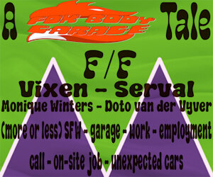 The next day, Doto even arrived at the garage early. She was already there a bit before noon, bringing a small box of donuts for lunch as a thank-you for Monique offering her a job. She even sat naked in the office with the vixen as Monique showed her how the scheduling program on the computer worked so Doto could plan in appointments herself. They took some time after lunch as well to get the serval woman even more familiarized with the garage and some of the tools and equipment, and as the time crept towards one o'clock, Monique gave Doto a pair of full-body coveralls to put on in place of her regular clothes and showed her what items and tools should all be in the storage boxes on the rollback truck before they both got into the truck and Monique drove them through town and out the other side of it to get to their appointment for the day.